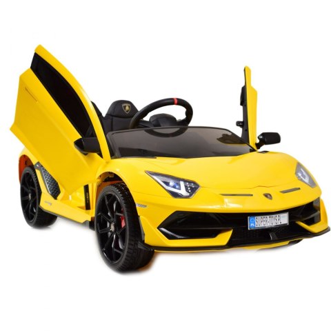 AUTO LAMBORGHINI w wersji z miękkimi koła EVA zasilane na 1x12 V z napędem na dwa koła zachwyci nie jednego przyszłego kierowcę. Dzięki zastosowanym najmocniejszym silnikom 45 W, auto jeździ po nierównym terenie bez żadnych problemów, a dodatkowo silniki te są bardzo dobrej jakości. Najciekawszą funkcją pojazdu są - amortyzatory i otwierane do góry drzwi na solidnych amortyzatorach.