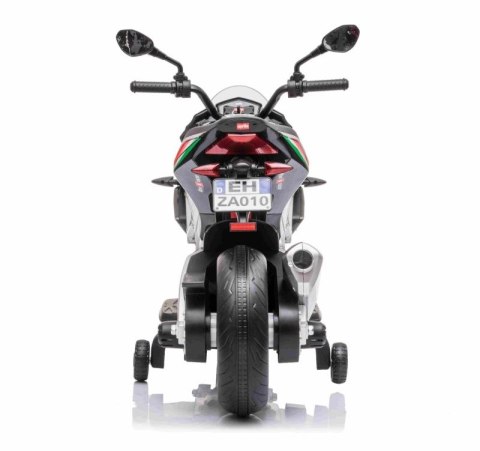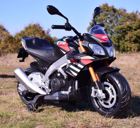 MOTOCYKL APRILIA TUONO V4 zasilany na 12 V z dwoma silnikami zachwyci nie jednego przyszłego kierowcę. Dzięki zastosowanym najmocniejszym silnikom 45 W, jeździ po nierównym terenie bez żadnych problemów, a dodatkowo silniki te są bardzo dobrej jakości. Najciekawszą funkcją pojazdu są AMORTYZATORY.