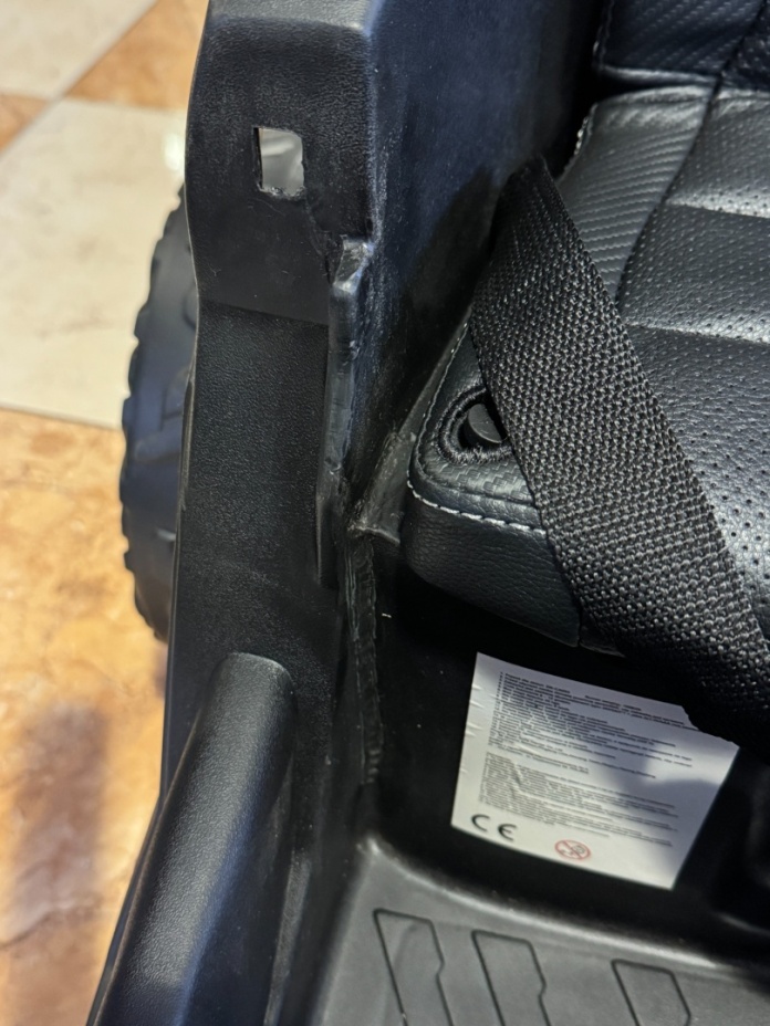 UTV posiada również pasy bezpieczeństwa oraz wskaźnik naładowania baterii, który informuje, ile energii pozostało. Pojazd przeznaczony jest dla dzieci o wadze do 30 kg – jeśli dziecko waży więcej, prędkość może być niższa, a bateria szybciej się wyczerpuje.