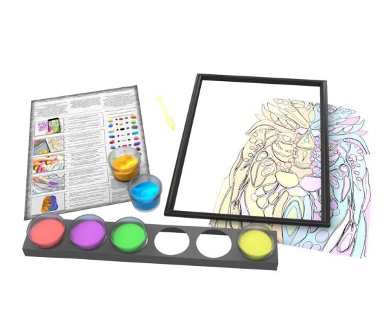 Stworzenie własnego obrazu już nie będzie dla nikogo problemem. Ten wspaniały zestaw dostarczy każdemu wiele radości i relaksu. Zawartość umożliwi wyklejenie obrazu z gotowej masy w wyznaczonych miejscach. Jedwabista konsystencja glinki ułatwia tworzenie wzorów, zachowuje swój kształt, szybko schnie i nie traci blasku. Gotowy obraz może stanowić dekoracje do domu, bądź być prezentem dla najbliższych. Czas całkowitego utwardzania masy to około 2-3 dni. Wyklejanie ciastoliny rozwija zmysł dotyku, zdolności manualne i wyobraźnie, dodatkowo ugniatanie masy działa również odprężająco. Produkt jest nieodpowiedni dla dzieci poniżej 3 roku. Substancja jest nie toksyczna i nie wywołuje alergii, posiada certyfikat CE.
