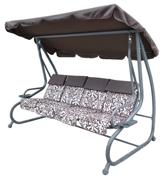 Opis  Huśtawka ogrodowa z rozkładanym siedziskiem i regulacją daszka, ciemny brąz ze wzorem [8078 PATTERN CB]