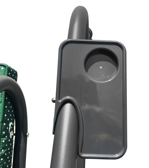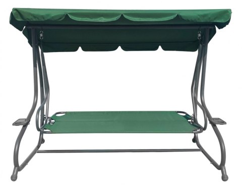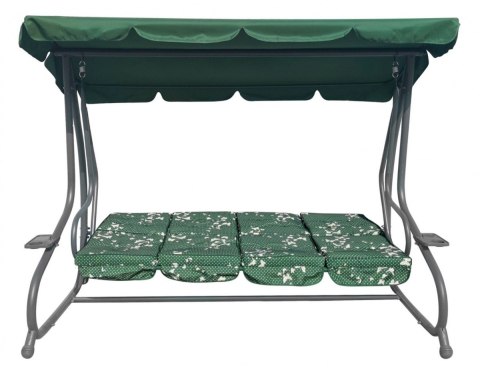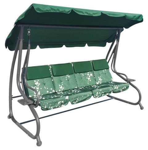 Huśtawka ogrodowa z rozkładanym siedziskiem i regulacją daszka, zielona ze wzorem