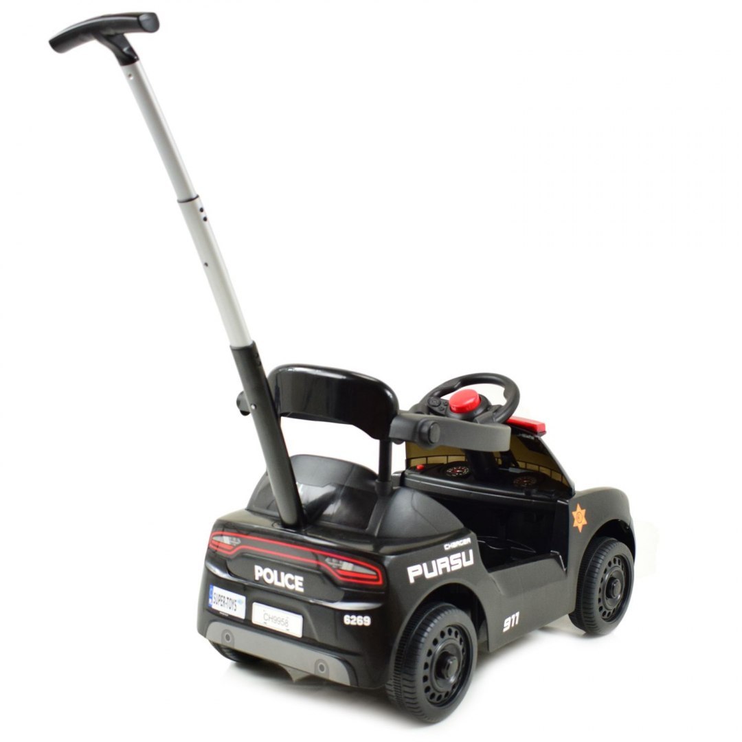 Pierwszy jeździk policyjny dla maluszka z składaną rączką dopchania przez Rodzica z całą pewności zainteresuje przyszłego policjanta.