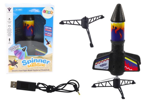 Gdy rakieta osiąga maksymalną wysokość, z jej czubka otwiera się spadochron, który spowalnia opadanie i pozwala jej bezpiecznie wrócić na ziemię. Dzięki temu rakieta nie spada bezwładnie, eliminując ryzyko uszkodzeń i wydłużając żywotność zabawki.