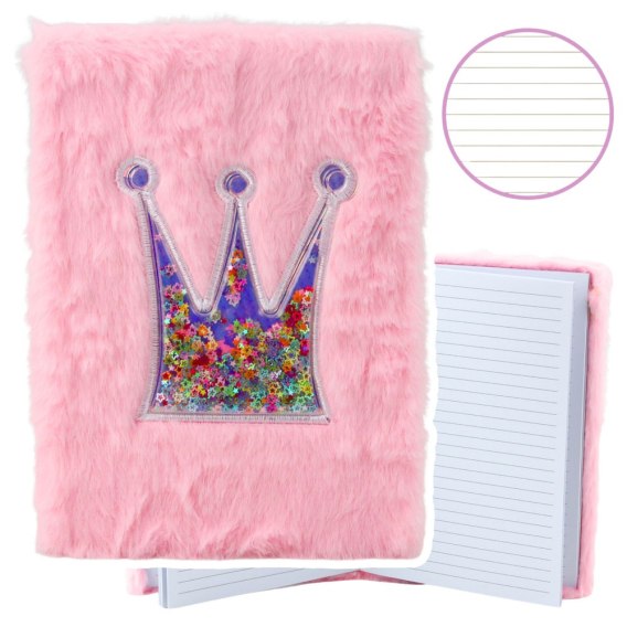 Pluszowy Zeszyt Notatnik W Linie Korona Z Konfetti Różowy A5 80 Kartek