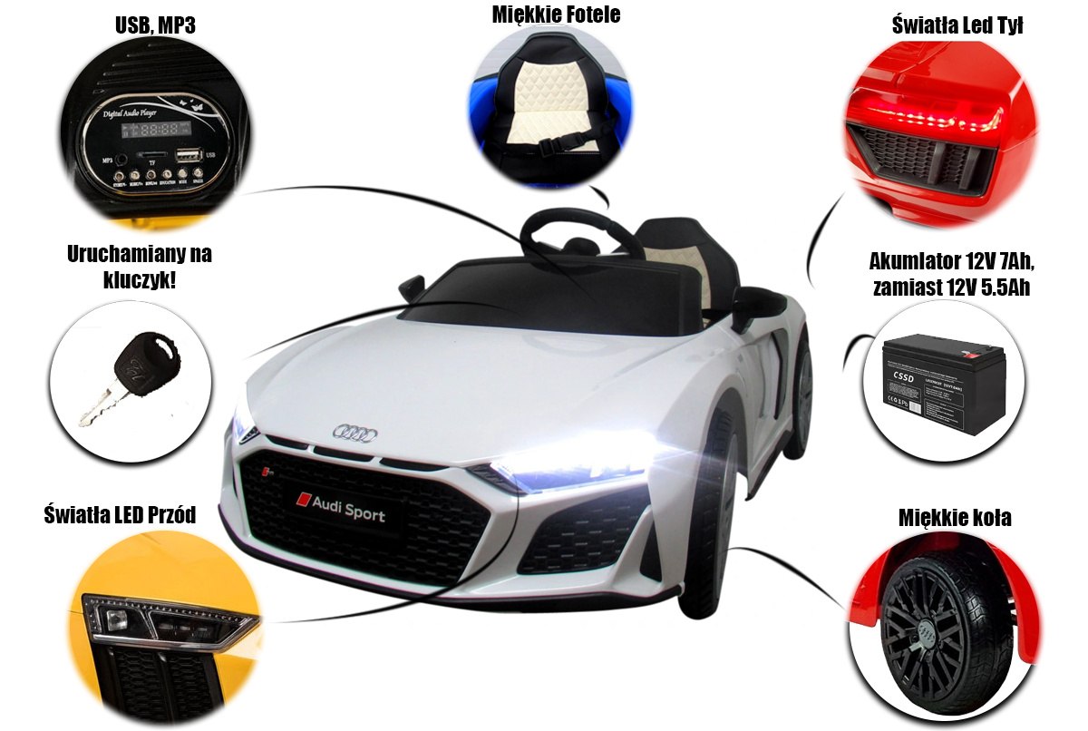 MUZYKA✅KLAKSON✅ŚWIATŁA✅USB✅PILOT✅AUX✅MP3✅pełne oświetlenie LED✅KOŁA Z MIĘKKIEJ PIANKI EVA✅SKÓRZANY FOTELIK Z PASAMI✅ ALUFELGI✅