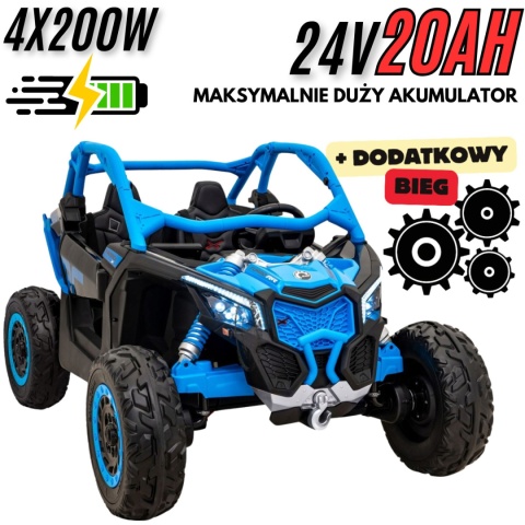 ORYGINALNY CAN-AM MAVERICK w wersji 24V z czterema silnikami po 200W każdy!! Łącznie aż 800W mocy! Akumulator o łącznej pojemności 24V20Ah - NAWET 3-5h jazdy na jednym naładowaniu! (zależnie od terenu i wagi dziecka)
