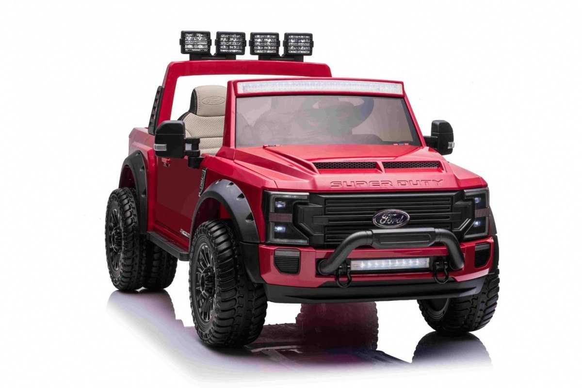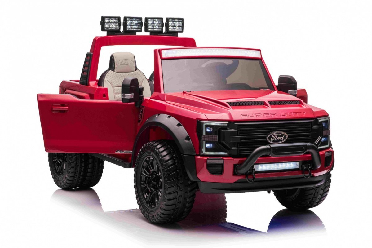 Pojazd Ford Super Duty to licencjonowany, bogato wyposażony, praktyczny i bezpieczny model terenowy dla dzieci. Spraw swojemu dziecku fantastyczną niespodziankę. Pojazd przyciągnie uwagę każdego małego i dużego miłośnika motoryzacji. Licencja Forda gwarantuje znakomitą jakość i wierne odwzorowanie nawet najmniejszych detali. Autko fantastycznie sprawdzi się podczas jazdy po nierównym terenie, gdyż posiada duże stabilne koła wykonane z miękkiej pianki EVA. Dla jeszcze większego komfortu jazdy tylne kółeczka sa podwójne, dzięki czemu komfort jazdy wzrośnie. Amortyzatory zlokalizowane na tylnych i przednich kołach oraz wygodne siedzenie wykonane z ekoskóry dla komfortu jazdy Twojego dziecka. Napędzany jest mocą czterech mocnych silników 45W. Posiada dwa mocne akumulatory 12V/14Ah. Pojazd wyposażony został w światła LED oraz liczne podświetlenia, np. podwozie.