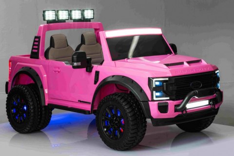 Pojazd Ford Super Duty to licencjonowany, bogato wyposażony, praktyczny i bezpieczny model terenowy dla dzieci. Spraw swojemu dziecku fantastyczną niespodziankę. Pojazd przyciągnie uwagę każdego małego i dużego miłośnika motoryzacji. Licencja Forda gwarantuje znakomitą jakość i wierne odwzorowanie nawet najmniejszych detali. Autko fantastycznie sprawdzi się podczas jazdy po nierównym terenie, gdyż posiada duże stabilne koła wykonane z miękkiej pianki EVA. Dla jeszcze większego komfortu jazdy tylne kółeczka sa podwójne, dzięki czemu komfort jazdy wzrośnie. Amortyzatory zlokalizowane na tylnych i przednich kołach oraz wygodne siedzenie wykonane z ekoskóry dla komfortu jazdy Twojego dziecka. Napędzany jest mocą czterech mocnych silników 45W. Posiada dwa mocne akumulatory 12V/14Ah. Pojazd wyposażony został w światła LED oraz liczne podświetlenia, np. podwozie.