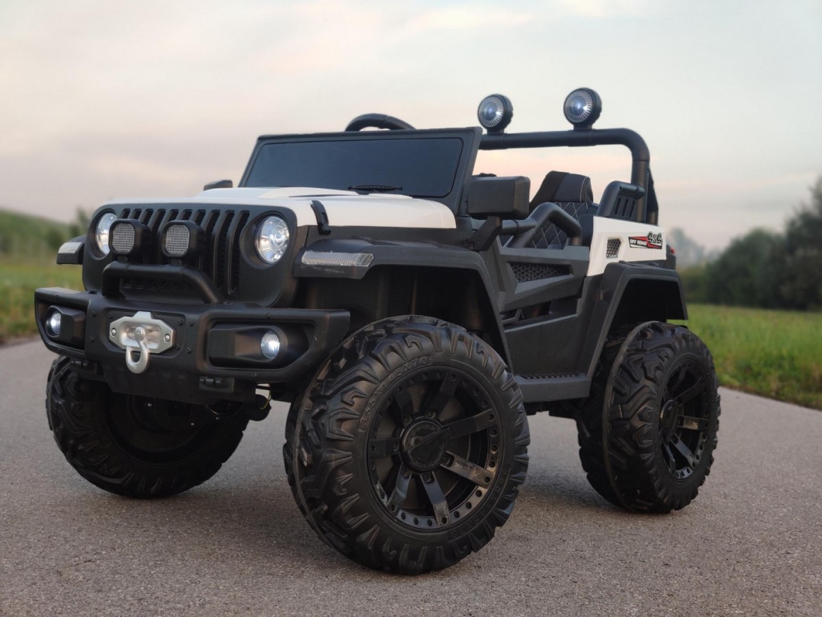 Jeep posiada napęd 4x4 - na wszystkie koła oraz wygodny wyjmowany akumulator z możliwością ładowania poza pojazdem