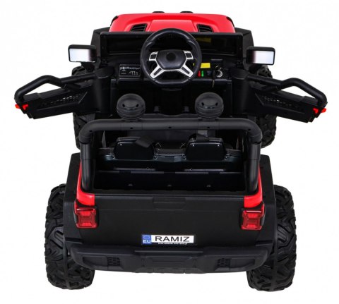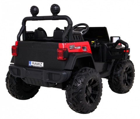 Jeep posiada napęd 4x4 - na wszystkie koła oraz wygodny wyjmowany akumulator z możliwością ładowania poza pojazdem
