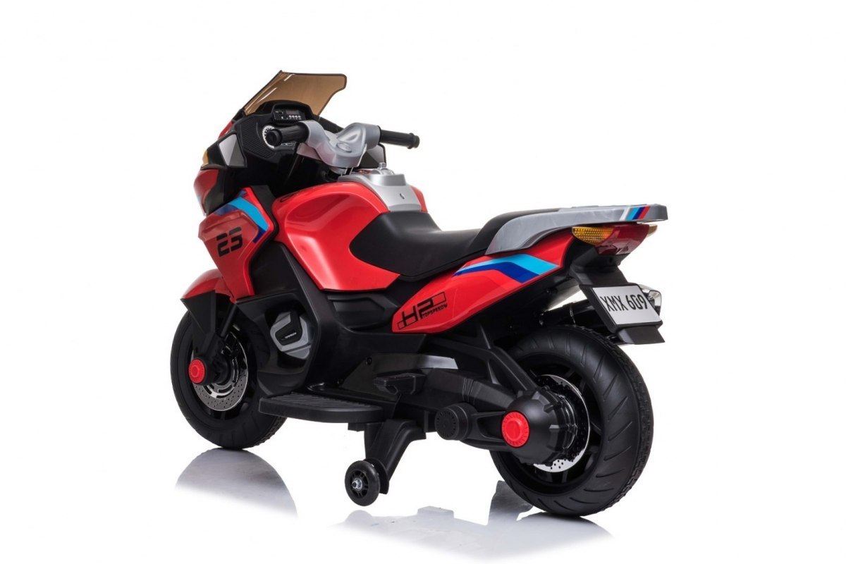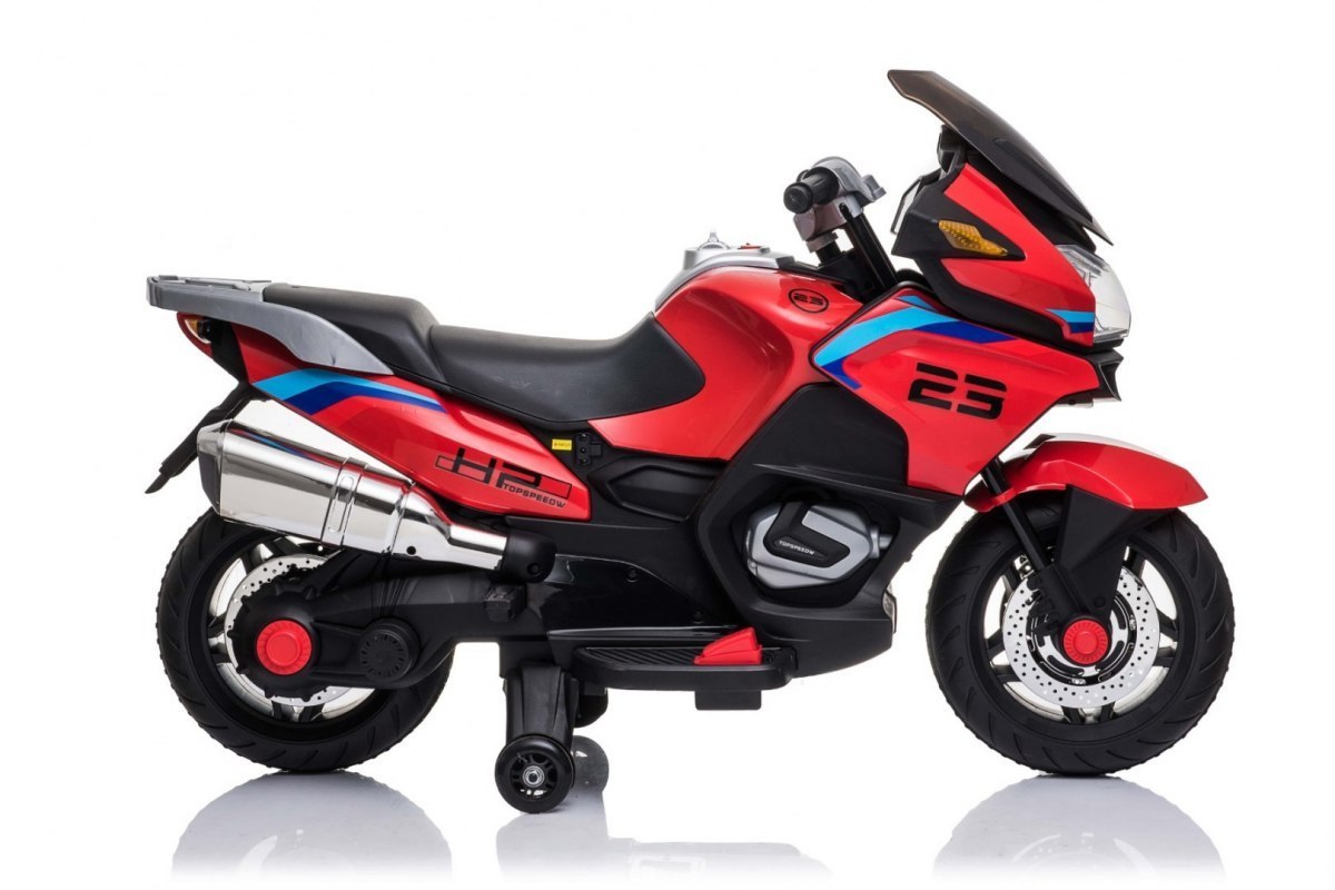Proponowany przez nas motorek wykonany został z trwałego, pierwszej klasy plastiku. Posiada dokręcane kółeczka boczne dla bezpieczeństwa Twojej pociechy, oraz przednie i tylnie światła LED, żeby dziecko było bardziej widoczne. Motorek posiada funkcje wolnego startu, rusza płynnie, żeby Twoja pociecha się nie przestraszyła. Kierunek jazdy zarówno do przodu jak i do tyłu. Panel muzyczny z: radiem FM, wejściem MP3, SD, AUX, USB, z pewnością umili jazdę.