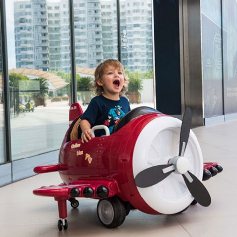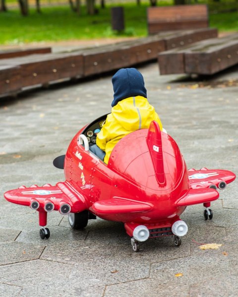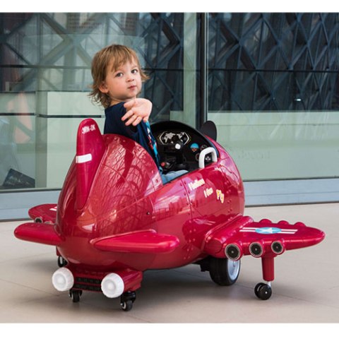 Pojazd na akumulator w formie samolotu to nie lada gratka dla fana lotnictwa! Maszyna przypomina do złudzenia prawdziwy samolot, ponieważ posiada wszystkie niezbędne oprzyrządowanie, które posiada samolot. Umiejscowione z przodu pojazdu skrzydło samolotu posiada ogromne śmigło, które idealnie odwzorowuje to prawdziwe, występujące w samolocie.