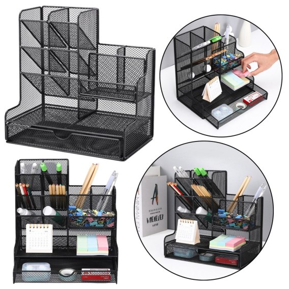 ✔️ Elegancki design - Nowoczesny wygląd organizeru pasuje do każdej przestrzeni roboczej, wprowadzając do niej styl i elegancję. ✔️ Funkcjonalność - 8 komór zapewniają łatwy dostęp do najważniejszych akcesoriów biurowych, a ich przestronność pozwala na przechowywanie nawet większej ilości drobiazgów. ✔️ Trwałość i stabilność - Wykonany z metalowej siatki organizer jest odporny na uszkodzenia, a jego solidna konstrukcja zapewnia długowieczność. ✔️ Wygodne przechowywanie - Kompaktowe wymiary sprawiają, że organizer zmieści się na każdym biurku, oszczędzając miejsce, a jednocześnie umożliwiając organizację przestrzeni.