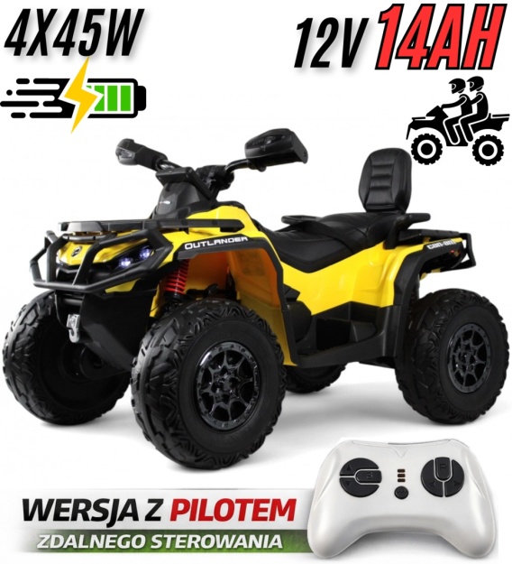 Quad Can Am Outlander 4x4 na akumulator 12V 14Ah + PILOT Żółty