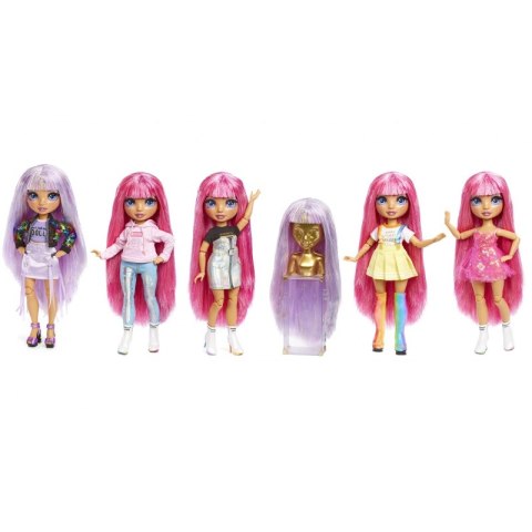 Studio mody Fashion Studio z lalką to wspaniały zestaw do stworzenia wyjątkowych stylizacji. Studio mody oferuje tak wiele oszałamiających fasonów, aby lalki Rainbow High wyglądały idealnie na wybiegu. Zestaw zawiera ekskluzywną lalkę Avery Styles oraz ubrania i akcesoria, które można łączyć i dopasowywać, aby stworzyć ponad 300 efektownych stylizacji. Lalka ma niezwykłej urody dające się czesać włosy, a jej twarz zdobią długie rzęsy. Ponadto posiada super funkcje. Przeguby kończyn umożliwiają ustawienie jej w dowolnej pozie. Ramiona i nogi zginają się, gdy nadajesz lalce kolejną efektowną pozę. Zmień peruki Avery, aby całkowicie zmienić jej wygląd lub pozostaw ją bez peruki, ponieważ ma pod spodem urocze wycięcie w stylu pixie. Ciesz się niekończącą zabawą w modę dzięki złotemu stojakowi na ubrania, wysokiej jakości przezroczystym pudełkom na buty, wieszakom na ubrania i tęczowym spinkom do stylizacji włosów. Zbierz wszystkie wspaniałe lalki Rainbow High (lalki sprzedawane oddzielnie).