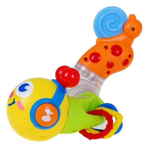 Po uruchomieniu przycisku dziecko usłyszy melodię (6 melodii), a towarzyszyć mu będzie światełko z migoczących czułków.