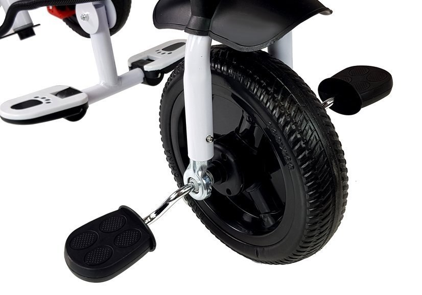 W konstrukcji rowerka znajduje się pojemny kosz na zakupy lub skarby dziecka, umieszczony pomiędzy tylnymi kołami, a także mała saszetka na suwak znajdująca się na prowadnicy dla rodziców — detale te ułatwiają całodniowe przejażdżki i wycieczki. Dzięki miękkiej piankowej barierce Twoje dziecko będzie w pełni bezpieczne podczas spacerów i nie wypadnie z siodełka. Dodatkowo jest możliwość obrotu siedziska dziecka w swoja stronę i czuwania nad jego bezpieczeństwem. Na kierownicy znajduje się również dzwonek trąbka, którym Twoje dziecko śmiało będzie mogło komunikować innym o tym, że jedzie. Trójkołowy rowerek dla dzieci przeznaczony jest dla wszystkich maluszków od 6 do 60 miesiąca życia, których waga nie przekracza 25 kg. Wykonano go z trwałego i odpornego tworzywa, które gwarantuje długą żywotność i komfort użytkowania. Rowerek posiada miękkie koła EVA. Trójkołowiec dla dzieci zapakowany jest w oryginalny karton, wewnątrz którego znajdują się śrubki, narzędzia i instrukcja ułatwiająca samodzielny montaż.