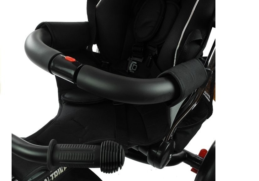 W konstrukcjidziecięcego, wielofunkcyjnego rowerkauwzględniono przypinany koszyk na zakupy lub skarby maleństwa, błotnik na przednim kole,rączkę z funkcjąregulacjiwysokości, a także pasy bezpieczeństwa na ramionka i dodatkowy pas ulokowany między nóżkami, utrzymujące dziecko w wygodnej pozycji, co równocześnie wpływa na zabezpieczenie przed wypadnięciem z siedziska rowerka.