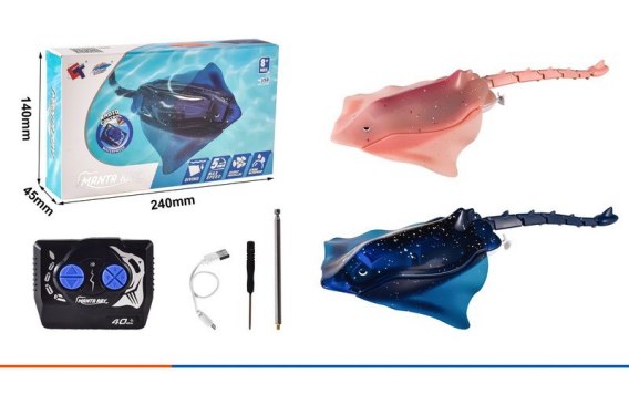 Ryba płaszczka zdalnie sterowana dla dzieci powyżej 8-go roku życia. Zabawka wygląda jak prawdziwa płaszczka i bardzo realistycznie się porusza. Płaszczka nie tylko pływa po wodzie, ale również nurkuje w niej. Przemieszcza się do przodu, do tyłu, w prawo i w lewo. Po wyjęciu z wody automatycznie się wyłącza. Płaszczka osiąga prędkość do 5 km/h. Ładowana jest kablem USB typu-C. Zasilanie: ryba płaszczka 3,7 V (w zestawie), pilot 3 x AA 1,5 V (brak w zestawie).
