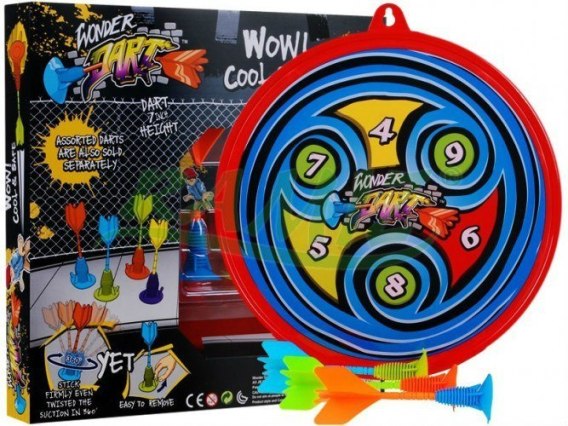 - bezpieczne rzutki z gumową przyssawką (długość ok. 17 cm).