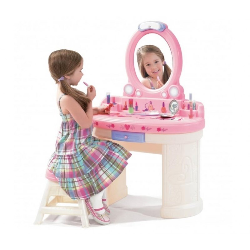 STEP2 Toaletka dla dziewczynki z lustrem z oświetleniem biała różowa