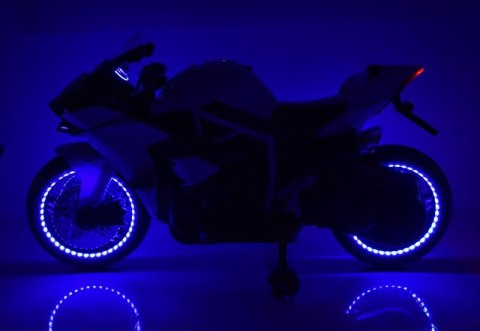 SUPER ŚCIGACZ 12 V, NOWOCZESNA BRYŁA, ŚWIECĄCE KOŁA, GAZ W MANETCE, DWA SILNIKI/MOTOR-H