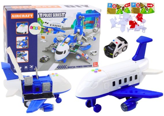 Wyposażony w napęd, który działa na zasadzie pociągania do tyłu i puszczania, samolot błyskawicznie przemieszcza się po pasie startowym, zapewniając dodatkową frajdę z zabawy. Samolot można zamienić w mobilny komisariat, z którego wyjeżdżają trzy metalowe wozy bojowe. Te szczegółowo wykonane pojazdy dodają realizmu i pozwalają na jeszcze bardziej angażującą zabawę. Na dachu samolotu znajduje się specjalna platforma, która po naciśnięciu przycisku „wystrzeliwuje" wóz policyjny, imitując dynamiczny start i umożliwiając błyskawiczne dotarcie na miejsce zgłoszenia.