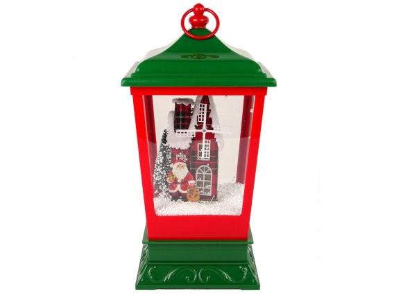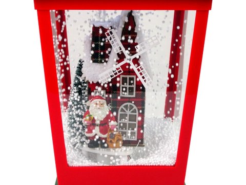 Świąteczny Lampion Światełka Sypiący Śnieg Czerwono- Zielona