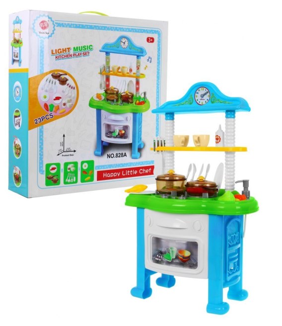 ŚWIECĄCA KUCHNIA Z ZEGAREM, DŹWIĘKI +ŚWIATŁA + KRAN (828A)