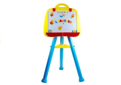 Duża, edukacyjna tablica zachwyci każdego fana prac plastycznych. Powłoka tablicy sprawia, że można pisać na niej flamastrem, a także przyczepiać obrazki, cyferki i literki na magnes. Ponadto tablica posiada klipsy, którymi można przypiąć kartę, by móc używać tablicyjak sztalugi.