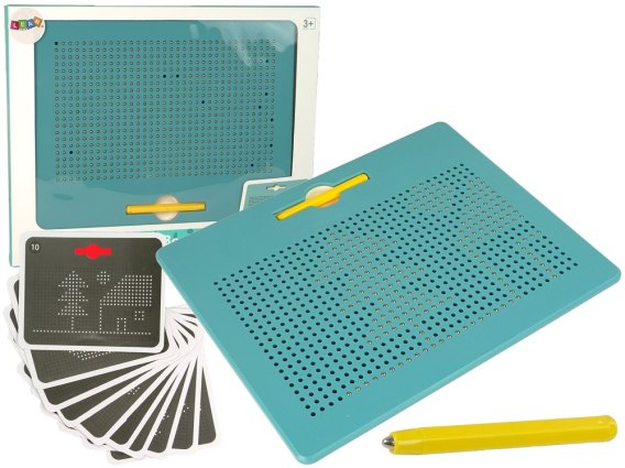 Każdy obrazek można łatwo ukryć. We wnętrzu zamkniętej tablicy znajdują kuleczki, a na powierzchni tablicy otwory. W trakcie przesuwania namagnesowaną końcówką pisaka po otworach kuleczki tworzą dzieło. Co zrobić, aby obrazek zniknął? Wystarczy płaską powierzchnią lub palcem przesunąć po rysunku, a kuleczki schowają się do środka.