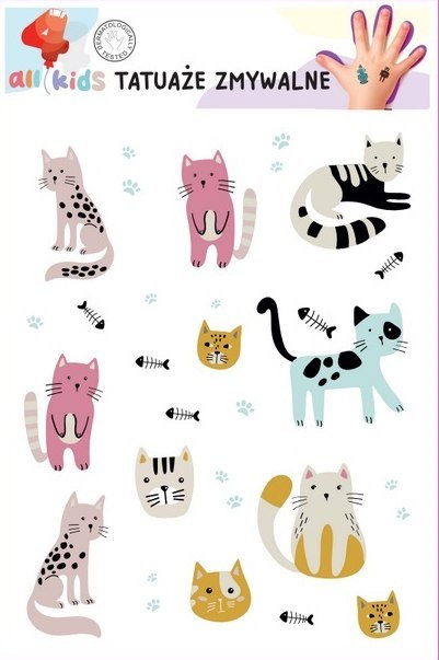 Tatuaże Zmywalne Dla Dzieci Kotki Koty Kolorowe 17 El.