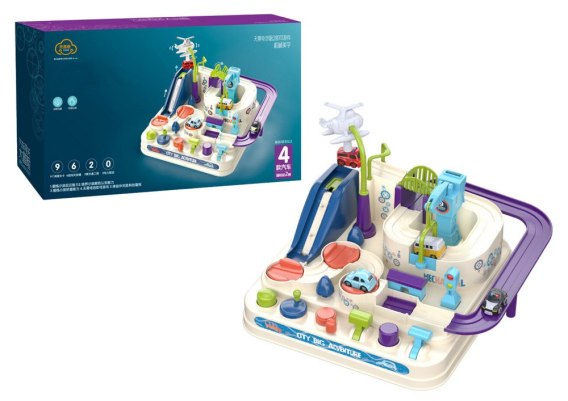 Zestaw składa się z wieloelementowego, kolorowego toru przeszkód, który został starannie zaprojektowany, aby zapewnić dziecku maksymalną frajdę i stymulować jego wyobraźnię. Razem z czterema samochodzikami, maluch może pokonywać różnorodne przeszkody, takie jak zjeżdżalnie czy mosty zwodzone, używając do tego celu specjalnych przycisków i gałek umieszczonych na dole planszy.