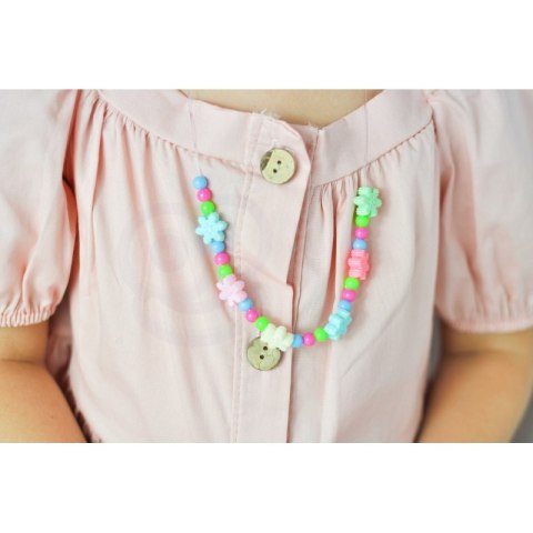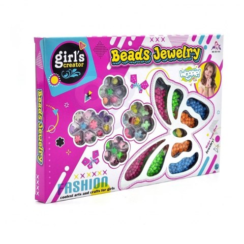 Zestaw do Robienia Biżuterii od marki WOOPIE jest stylowym, kreatywnym i zjawiskowym zestawem dla każdego dziecka. Dziecko samodzielnie może mieszać i dopasowywać różne koraliki oraz zawieszki, aby stworzyć swoją niepowtarzalną bransoletkę, pierścionek, kolczyki lub wisiorek. Dziecko może nosić bransoletkę samemu lub podarować komuś bliskiemu. Zestaw zawiera różnego rodzaju elementy: koraliki różnej wielkości, zawieszki, elementy przypominające zwierzątka, oraz żyłki. Komplet zapakowany jest w kolorowe pudełko z wygodnym uchwytem do przenoszenia idealne na prezent. Po rozpakowaniu zestaw jest łatwo przenośny jest lekki i poręczny, co sprawia, że dziecko z łatwością może go zabrać ze sobą do przedszkola, do kolegi, do ogrodu. Opakowanie, również posiada formę organizera, co pozwoli na bezpieczne przechowywanie małych elementów znajdujących się w zestawie. Zabawa w tworzenie biżuterii pozytywnie wpływa na rozwój dziecka, kształtuje jego zdolności plastyczne wraz z rozwojem wyobraźni oraz kreatywności, ćwicząc jednocześnie koncentrację; rozwija zdolności manualne/motoryczne tzw. "małą motorykę" (ruch rączek), a także przy zabawie z przyjaciółmi uczy współpracy, dzielenia się i usprawnia zdolności społeczno-integracyjne.