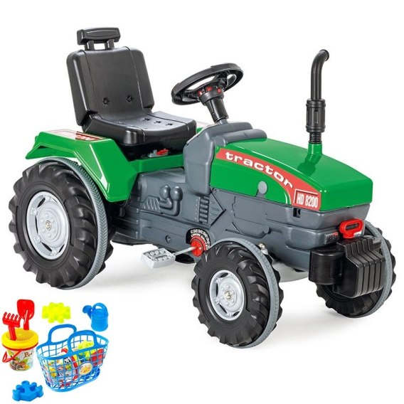 WOOPIE Ogromny Zielony Traktor Na Pedały z Klaksonem + Wiaderko Zestaw Wakacyjny 8 akc Koszyk