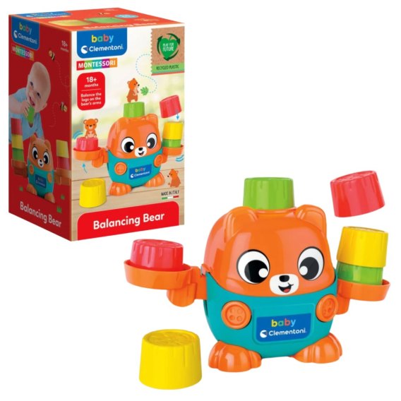 Zabawka edukacyjna inspirowana metodą Montessori, w której ramiona misia pełnią funkcję wagi, a dziecko może układać na niej kolorowe pniaki-kubeczki. Poprzez zabawę maluch uczy się podstawowych pojęć związanych z masą, równowagą i proporcjami.