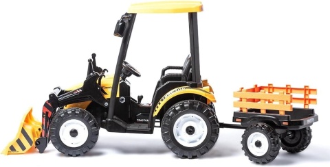 Wielki traktor na akumulator TITAN 24V 2x200W z przyczepką łyżką + kabina żółty