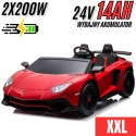 Wielkie dwuosobowe Lamborghini Aventador SV 2x200W 24V do 100kg Czerwony