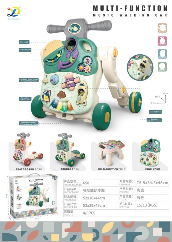 - tryb chodzika, - tryb deskorolki, - tryb jeździka, - tryb stolika multifunkcyjnego Specyfikacja zabawki 4 w 1