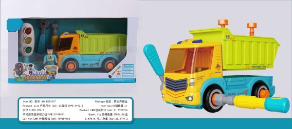 Wywrotka do rozkręcania z akcesoriami dla dzieci od 3-go roku życia. Zabawka wykonana została z najlepszej jakości plastiku w żywych kolorach. Pojazd możemy rozłożyć na czynniki pierwsze, w zestawie znajdują się 2 śrubokręty. W zestawie znajduje się też interaktywna sygnalizacja świetlna z efektami dźwięku i światła oraz figurka policjanta. Pojazd posiada gumowe bieżniki na oponach, trzymające przyczepność do podłoża oraz napęd na tył. Przednią część pojazdu możemy podnosić i na siedzeniu pojazdu umieścić figurkę policjanta. Pojazd zasilany jest bateriami typu 2 x AAA 1,5 V (brak w zestawie), sygnalizacja bateriami typu 2 x AAA 1,5 V (brak w zestawie).