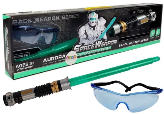 Zabawki Kosmiczne Miecz Świetlny Turkusowy Okulary Ochronne Dźwięk