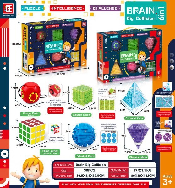 Zestaw układanek logiczno-zręcznościowych, dla dzieci od 3-go roku życia. W zestawie znajduje się: kostka z labiryntem i kulką, owalny spinner z układanką i smyczką, 2 piramidki z labiryntem i kulką, kostka rubika i kula układanka. Zestaw ćwiczy cierpliwość i logiczne myślenie, wzmacnia koncentrację, pozwala pracować nad motoryką dłoni. Mały gabaryt zabawek sprawia, że zabawkę można zabrać wszędzie ze sobą i ćwiczyć np. na przerwie czy u lekarza.
