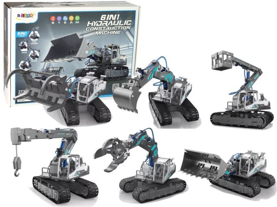 Zestaw 6w1 Maszyny Koparka Gąsiennicowa Hydrauliczna Konstrukcja DIY
