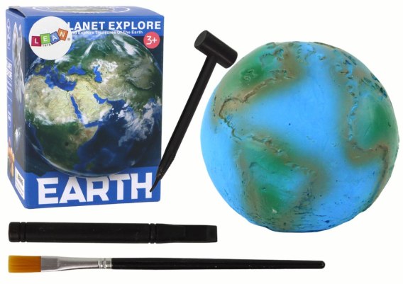 Zestaw Archeologiczny Planeta Ziemia to fascynująca zabawa i nauka. Znajdziesz w nim narzędzia do wykopywania skarbów ukrytych wewnątrz kuli w stylu planety Ziemia, w tym kamienie szlachetne.