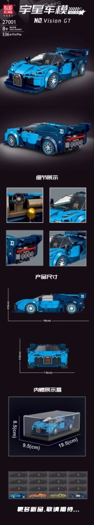 Zestaw 336 klocków konstrukcyjnych do samodzielnej budowy niebieskiegosamochodu wyścigowego. Zabawka przeznaczona dla dzieci od 8-go roku życia. Klocki i elementy autka wykonane zostały z wysokiej jakości, wytrzymałego tworzywa sztucznego ABS oraz materiału z włókna węglowego.