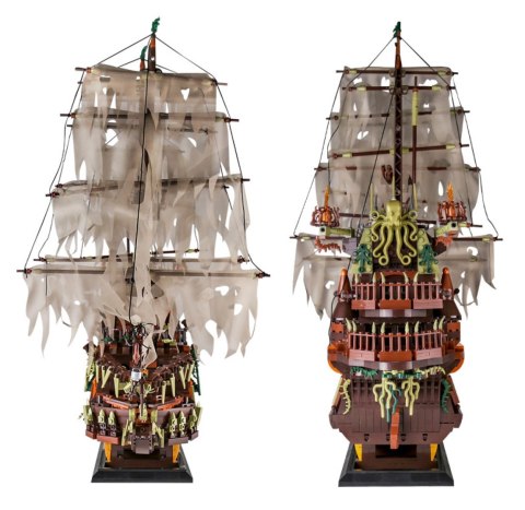Po złożeniu widoczne będą liczne detale i świetnie odwzorowane części statku. Model jest pełny zdobień i morskich motywów, jak np. ośmiornica. W zestawie dołączono instrukcję obrazkową. Układanie klocków konstrukcyjnych rozwija u dzieci zdolności manualne, wyobraźnię przestrzenną i cierpliwość.