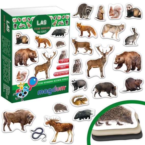 Kolorowy zestaw magnesów ze zwierzętami z pewnością zapewni Twojemu dziecku dużą dawkę radości i zabawy. Magnesy są trwałe, a dzięki swoim odpowiednim kształtom, również wygodne dla dłoni dziecka. Zaokrąglone krawędzie zapewnią bezpieczeństwo podczas zabawy. Sposób układania figurek jest dowolny i zależy tylko od wyobraźni dziecka. Zabawa skutecznie rozwija koordynację ruchową, która jest niezwykle ważna u najmłodszych.  W zestawie znajduje się 20 kolorowych magnesów w różnych kształtach i kolorach. Dzięki swoim niewielkim kształtom nie będą zajmowały dużo miejsca i zmieszczą się nawet na wakacyjny wyjazd.  Po skończonej zabawie magnesy idealnie prezentują się również na lodówce, bądź szafkach z elementami metalu. Produkt przeznaczony jest dla dzieci powyżej 3 roku życia. Zapakowany w kolorowe pudełko idealnie nadaje się na prezent.