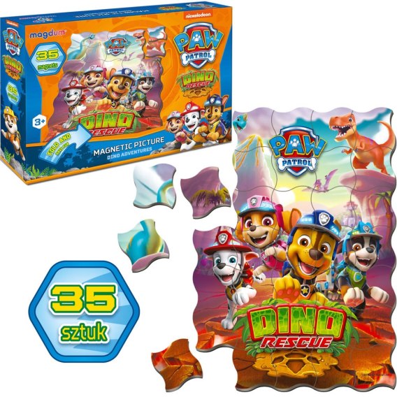 Kolorowa układanka z ulubionymi bohaterami kreskówki z pewnością zapewni Twojemu dziecku dużą dawkę radości i zabawy. Magnesy są trwałe, a dzięki swoim odpowiednim kształtom, również wygodne dla dłoni dziecka. Zaokrąglone krawędzie zapewnią bezpieczeństwo podczas zabawy. Zabawa skutecznie rozwija koordynację ruchową, która jest niezwykle ważna u najmłodszych. W zestawie znajduje się 35 kolorowe magnesów tworzących wspólnie obrazek z bohaterami.Dzięki swoim niewielkim kształtom nie będą zajmowały dużo miejsca i zmieszczą się nawet na wakacyjny wyjazd. Po skończonej zabawie magnesy idealnie prezentują się również na lodówce, bądź szafkach z elementami metalu. Produkt przeznaczony jest dla dzieci powyżej 3 roku życia. Zapakowany w kolorowe pudełko idealnie nadaje się na prezent.