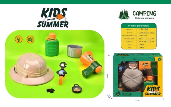 Zestaw małego odkrywcy dla dzieci od 3-go roku życia. Zestaw wyposażono w kapelusz, manierkę na wodę, megafon, zegarek, kompas oraz gwizdek. Megafon zasilany jest bateriami typu 2 x AA 1,5 V (brak w zestawie). Posiada nagłośnienie oraz czerwoną diodę.